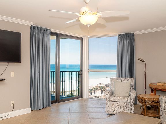 Gorgeous views from this 3BR/3BA, 1,462SF, furnished condo at Mainsail. This condo features large diagonal tiles throughout the living space, new sliding doors and beautiful views from multiple rooms. The kitchen features unique tile countertops with gray cabinetry, white & stainless appliances, stand-alone ice maker, large pantry, & laundry closet. The living space is large with amazing views of the beach & gulf. The main bedroom features balcony access, travertine shower, & tile double vanity. There are also 2 additional bedrooms, one with private bath, & a hallway full bath. Mainsail Amenities include 2 Pools, 700FT of beach, tennis courts, covered parking, gated entry, & 24hr security. See you at the Beach!!!