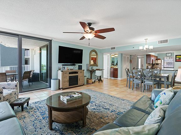 Priced to sell! This is a one-of-a-kind opportunity to own a 2 bed/2 ba gulf front condo just steps from the beach and comes with its own covered owner's parking. The floors are all tiled for easy beach living. Crown molding throughout and NO popcorn ceiling. HVAC and water heater was replaced 2024! The living room and primary bedroom access the balcony that has a gulf view. The unit is being sold fully furnished and rental ready and comes with extra storage. Located in the gated and guarded Mainsail community, you'll enjoy 700 feet of deeded private beach, two pools, tennis and pickleball courts, basketball, shuffleboard, a fitness center with vending, covered parking, and courtesy security patrol. Perfectly positioned on Scenic Gulf Drive across from Silver Sands Outlet Mall and close to fine dining, shopping, golf, fishing, and world-class water activities along the Emerald Coast.