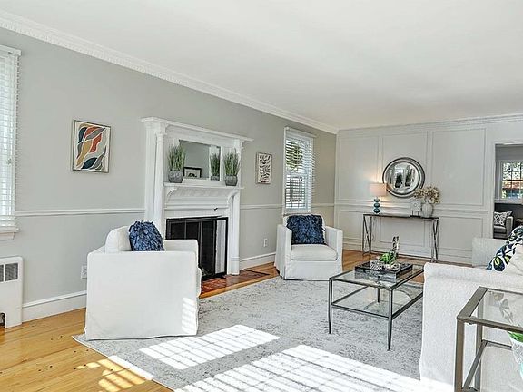 Charming 1940’s Garrison Colonial on one of Oak Hill’s prettiest streets! This sun-filled, south-facing home is in immaculate, move-in condition and full of classic character, with original hardwood floors and appealing period details throughout. The spacious 1st floor features a large living room with a lovely picture window and a wood-burning fireplace, a family room with custom built-ins, a formal dining room also with a picture window, and an updated cook’s kitchen with cherry cabinetry and a breakfast area. A versatile 3-season room overlooks the private fenced yard with a stone patio - perfect for relaxing or entertaining. A powder room completes the main level. The 2nd floor offers a generous primary bedroom with two ample closets, plus two more sizable bedrooms, and a large tiled bathroom with soaking tub, stall shower, and double vanity. The finished lower level offers great flex space for a rec room or office. Updated utilities include 3 efficient zones of gas forced hot water heat in semi-recessed radiators and 2 zones of central air. All replacement windows, and a freshly painted interior. Integral garage. Prime location convenient to the East Side, downtown Providence, I-95, and the new Pawtucket train station.