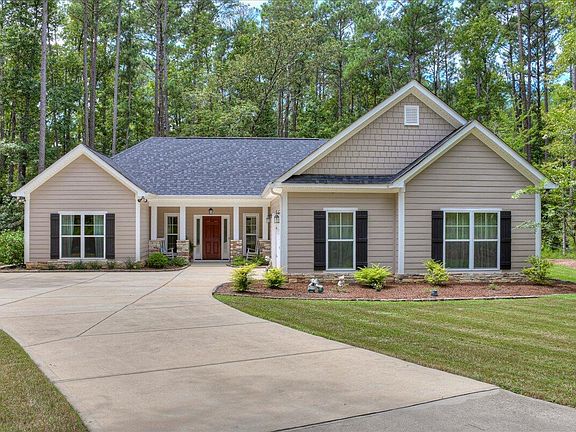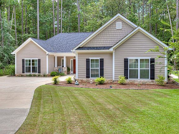If you're looking for like new condition in Savannah Lakes Village, this 1710 sq ft 3 bedroom 2 bath built in 2018, home is for you. The home has many builder upgrades and you can be in it without waiting a year for a new build. The curb appeal of this home is outstanding with a long driveway and beautiful landscaping. As you enter the home you can't help but notice the open floor plan with the great room containing a vaulted ceiling, LVT floors and a gas fireplace. Beyond the great room are 1.5 story windows which let in plenty of natural light and beautiful views of the impressively landscaped backyard and beautiful hardwood trees. The kitchen has custom made cabinets with impressive granite countertops, and a gas stove with a range hood. The kitchen looks into the great room and dining room which also features a good view of the backyard. The main bedroom features a tray ceiling, spacious walk-in closet and a bathroom with a beautiful tiled walk in shower and a dual sink with granite countertops. From the bedroom you can enter on to a screened in patio which has gorgeous views of the backyard. The large patio area features an electronic awning which automatically closes when the wind becomes strong. This private lot backs up to POA property allowing for privacy and no one building in your backyard. This home is in spectacular condition and won't last long so schedule your showing today.