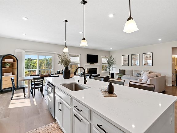 Welcome to 114 Marketplace Avenue in the Village at Marketplace! This nearly new home features a covered front porch and a three-car garage. Step inside to luxury vinyl flooring throughout the first floor and an open floor-plan with a gourmet kitchen offering quartz countertops, tile backsplash, stainless steel appliances, a walk-in pantry, and a large island perfect for gatherings. The main level includes a family room with a cozy fireplace, dining area, and a versatile flex room and den. Upstairs boasts a spacious loft for additional living space, second-floor laundry, a luxurious primary suite with dual walk-in closets, double vanity, and oversized shower. The unfinished open walk-out lower level leads to a patio and level yard. Construction is underway for the neighborhood pool and clubhouse, plus nearby walking trails and parks. Enjoy the convenience of a nearly new home without the wait—just minutes from all the amenities Moon and Robinson have to offer!