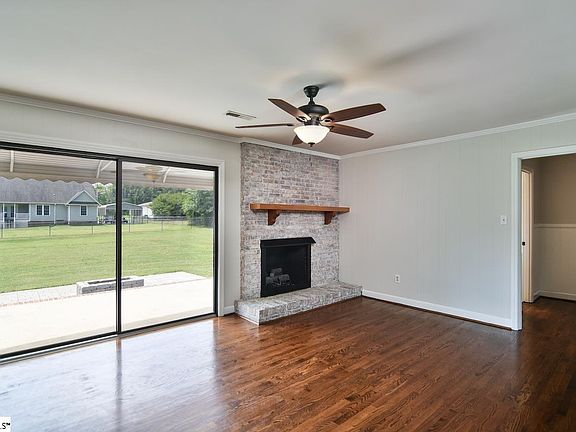 WHAT A GREAT FIND! You'll love this beautiful, updated 3 BR, 2 BA Ranch on a level one Acre lot!! Gleaming hardwoods flow throughout, even in the bedrooms. (Perfect for folks with allergies!) From the lovely Foyer, you'll enter an amazing Open Floor Plan with a large LR/DR open the Den with beautiful brick gas log FP . And this area is also open to the beautiful Kitchen and dining area. This light filled space is accented by a wall of windows and a large slider to a Patio ! The Kitchen is a joy to work in with its abundance of stylish cabinets, solid surface countertops and stainless appliances which include smooth top cooktop, built in microwave, DW and built in wall oven! Down a hall away from the living area are the spacious MBR Ensuite with large shower and walk in closet and the two additional large BRs and Hall BA. Outside you'll love the 16x13 Patio where you can relax on those warm summer evenings and there is also another 16x13 patio w/ a Firepit! And your outside entertaining can be extended to the large, shaded deck on the side of the home!! In addition to the attached 2 Car Carport with storage room, the wood worker, ceramic maker, car enthusiast, etc will LOVE the Detached Garage/Workshop! And for those wanting to raise chickens for their own eggs or have a garden, the large backyard is at the perfect fit!! Don't miss out on this wonderful opportunity for a taste of country living while being just minutes to FABULOUS DOWNTOWN GREER and I-85!
