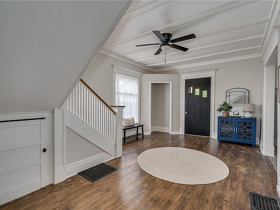 Step into timeless elegance with this beautifully updated 4-bedroom, 1.5-bath home tucked away on a quiet street—just a short walk to the park. From the moment you arrive, you’ll be captivated by the home’ charm, and stunning hardwood floors throughout. Large windows fill the home with natural light, enhancing the warmth and character of every room. The heart of the home is the jaw-dropping kitchen, thoughtfully renovated with updated cabinetry, butcher block countertops, and stainless-steel appliances. The bathrooms have been tastefully updated with modern finishes, offering one half bath on the main level and another full bathroom upstairs. You’ll also love the extra space offered by the large attic and basement—ideal for storage or future expansion. Outside, enjoy a nice sized fully fenced in backyard. Truly a must-see—don’t miss your chance to own this one!