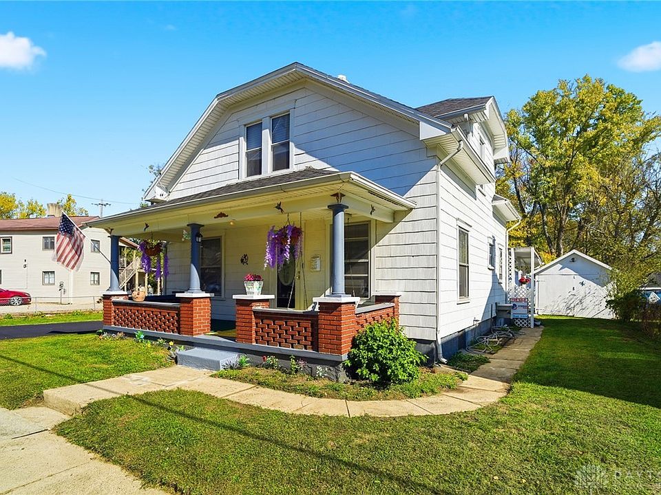 Charming old school home with modern features including New kitchen with all New appliances, New dimensional roof, New furnace, New Bath upstairs, Remodeled bath downstairs, New carpet upstairs and Refinished floors on main floor. Front and rear porches with rear porch view of covered bridge. Full basement with rec room. This home has 2 full and 1/2 baths, The car enthusiast or hobbyist will enjoy the 4 plus garages! Click on both Movie real icons to see more! Won't last long