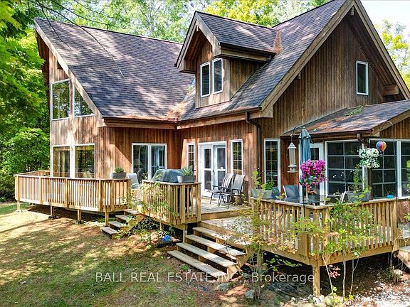 I am excited to share details about a remarkable property on Lake of Islands, offering unparalleled privacy and stunning natural beauty. This custom crafted Lindal red cedar home boasts over 4,300 square feet of finished living space, meticulously designed with a grand open concept living area. A large stone fireplace and masonry heater provide warmth and comfort, while floor-to-ceiling windows offer incredible views of the lake.The formal dining area is perfect for family gatherings, and the custom kitchen features quartz counters and an additional dining space. The home includes a spacious primary suite facing the lake, three more generous bedrooms on the second level, and four bathrooms. The fully finished basement offers additional living space, while amenities such as an automated generator, and cold storage/wine cellar add to the home's appeal. Situated on over 5 acres with 960 feet of shoreline, this property enjoys breathtaking sunsets over the sparsely populated Lake of Islands, part of a two lake system that includes Dickey Lake. Surrounded by tall pines, it offers complete privacy and a serene connection with nature, where the sounds of loons will truly captivate you. This property also comes with a fractional ownership of an additional 100 acres just down the road where you can enjoy a great trail system. The home also comes completely furnished - as viewed. I invite you to experience this exceptional property firsthand.