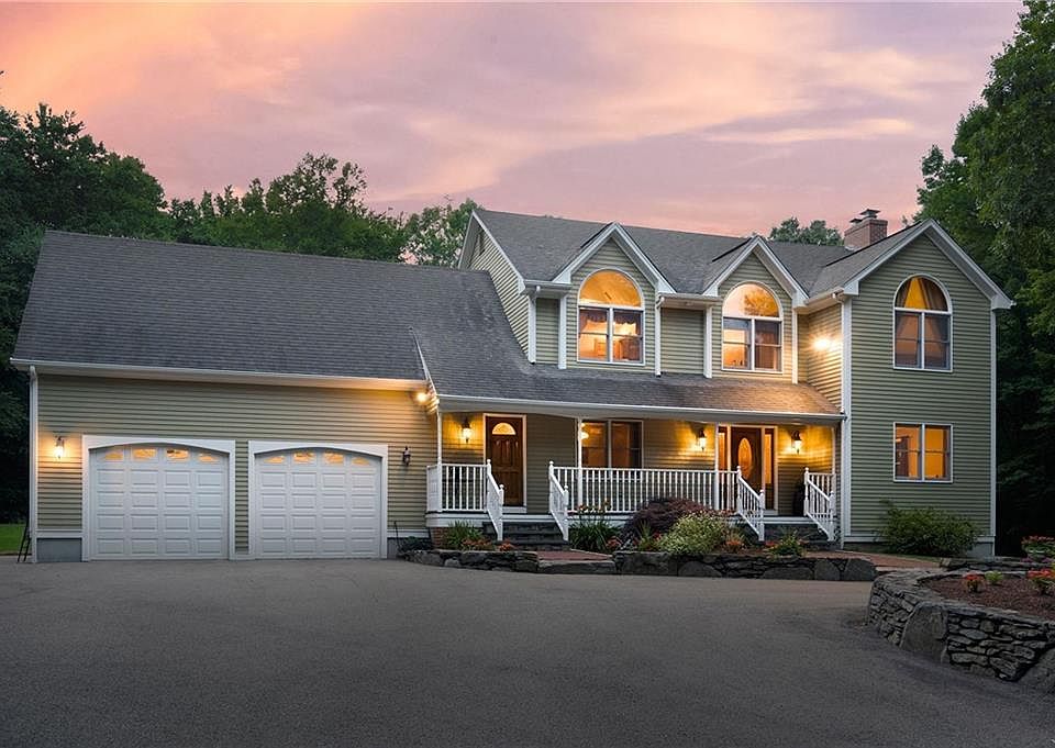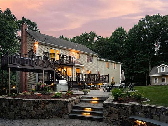 14 Private acres at the end of private road! Peaceful, serene, quiet are adjectives that describe this compound! This home offers stone walls, stamped concrete and paver patios, matured plantings and landscaping with underground sprinklers and utilities, near Glocester Country Club! This home offers 4 bedrooms, (possible 5), home office, home gym, large kitchen offers double sinks for prep with granite and stainless appliances, eating area, wet bar, dining room, huge front to back living room with wood burning fireplace, impeccably spotless home with gleaming hardwoods everywhere, solid wood 6 panel doors, radiant heating in part of flooring in home, 3 full and 2 half bathrooms(radiant heat in flooring), laundry on second floor where bedrooms are located, large finished basement that is AN AWESOME MAN TOWN with full wet bar, wine coolers, card tables, full bathroom, living room area with gas fireplace, walk out to side yard where round patio and stone fire pit are located, huge oversized 2 car garage, beautiful carriage house currently serving as a shed/storage area(also has 1 bay garage), interior with finished additional living space over garage is a total of 3609 sq. feet not counting the lower level finished space! Harmony Estates is a private road maintained by the town! LOCATION! LOCATION! This one is a "MUST SEE!!!!" CHECK OUT 3D VIRTUAL TOUR LINK! ASK FOR FLOOR PLANS! ONE METICULOUS OWNER!