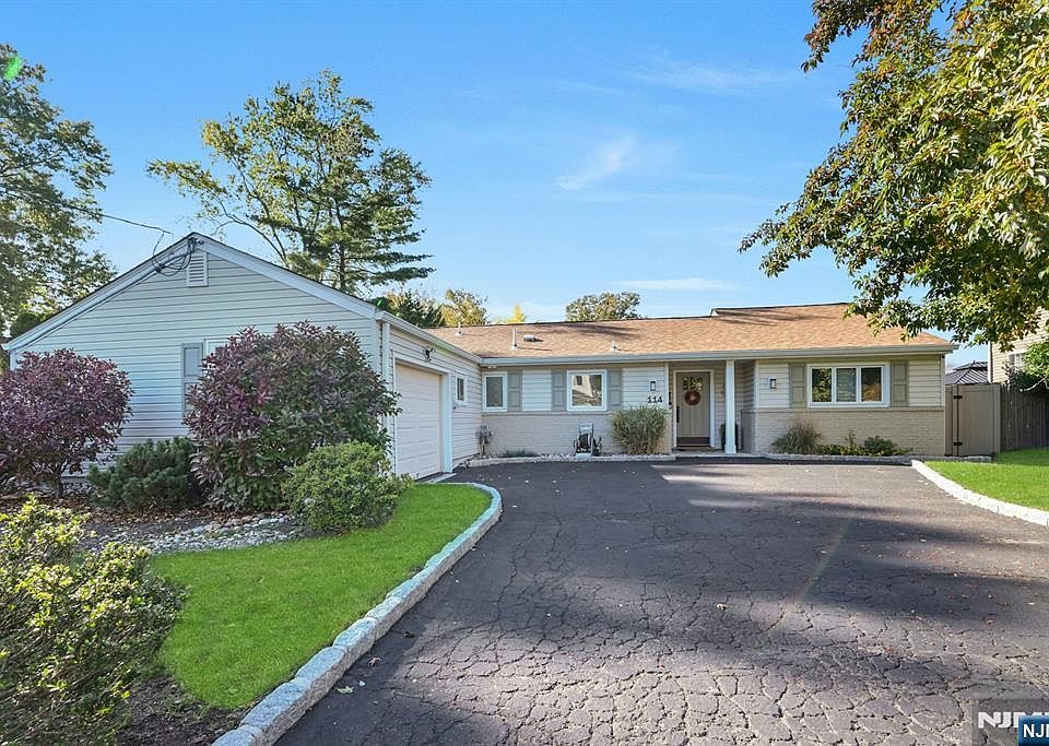 Beautifully Updated 4-BR Ranch in Emerson! The welcoming foyer opens to a spacious, open-concept living and dining room with sliding doors leading to the backyard. The modern kitchen includes white cabinetry, a large center island, Quartz countertops, and stainless steel appliances. A large family room features a sleek built-in electric fireplace, creating a warm and inviting atmosphere. The large primary suite includes a stylish full bath and convenient access to the laundry room and garage. Three additional generously-sized bedrooms and a modern full bath completes the interior. The lush, professionally landscaped property offers a serene, garden-like backyard — perfect for entertaining. Ideally located close to town, NYC transportation, parks, and schools!