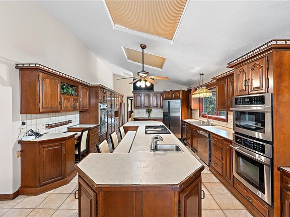 Nestled on over 4 acres in Quaker Valley School District, this expansive home offers unparalleled privacy and endless possibilities. The unique blend of rustic charm and spacious layouts make this a diamond in the rough, waiting for your imagination to make it shine. The kitchen is a sizable haven for the home chef, ripe for a modern makeover. Indulge in the main level spa room featuring a sunken jetted. The convenience of two bedrooms with 2 full and 1 half baths on this floor adds versatility to accommodate guests or serve as extra work or play spaces. Ascend to the upper floor and step into the master suite. An additional bedroom, full bathroom, and half bathroom offer plenty of room for family or guests. The star of the second level is the grand great room adorned with large skylights that flood the space with natural light. A car enthusiast's dream, the attached oversized garage has the capacity to hold 10 vehicles. Easy access to Sewickley, Cranberry, and Pittsburgh.