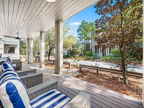 Nestled in the Forest District of WaterColor's Phase II, 114 Pine Needle is a stunning 6-bedroom, 6.5-bathroom cottage blending classic Florida charm with modern comfort. Bright white walls, cheerful furnishings, and coastal blue accents create a warm, inviting atmosphere. Five bedrooms feature en suite baths, with ample space for any group. The 2nd floor entertains with a huge open living area, kitchen, and dining that spills onto a 34' wide deck overlooking the private preserve. The 3rd & 4th floors offer a kids/sitting room and tower with mini kitchen--perfect for sunset views. Three sitting areas and five spacious porches ensure relaxation and connection for large families. Conveniently near Camp WaterColor and a short bike ride to the Gulf Front Beach Club with 3 pools along the Gulf Golf Cart included