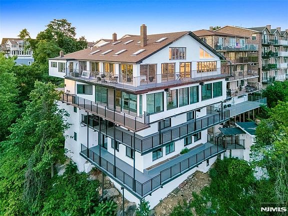 Perched high on a cliff, this exceptional 5-bedroom, 3-bath duplex apartment approximately 4,130 square feet with a 1,890 square foot balcony offers the ultimate blend of luxury, privacy, and breathtaking scenery. Featuring a rare wraparound balcony on each level, you'll enjoy unobstructed, panoramic views of the iconic New York City skyline day or night, the vista is simply unforgettable. Inside, the spacious open-concept layout is flooded with natural light from floor-to-ceiling windows, seamlessly connecting indoor and outdoor living. Separate entrances to each level from the exterior and an interior spiral staircase. The top level includes large living room with dining area, modern kitchen, primary suites boast direct balcony access, an en-suite bathroom, 2 additional bedrooms and a full bath. The lower level includes a brand new gourmet kitchen, huge living room/family room, two large bedrooms and a full bath. Each kitchen is equipped with premium appliances and sleek finishes, perfect for both quiet nights in and entertaining guests. Laundry is in unit on each level and also one car attached garage parking and one outdoor parking spot. High ceilings with recessed lighting throughout. Set in an exclusive, quiet location yet just minutes from the city, this apartment is a rare opportunity to live above it all private, dramatic, and unforgettable.