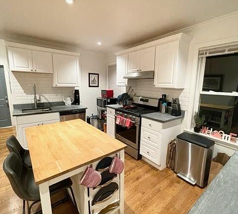 This top floor unit is located less than 5 minutes from the Green Line! Large bedrooms, a dedicated office space, three season porch, and extra storage make this unit an excellent choice for those that work from home as well as commute. The apartment has hardwood floors throughout, stone countertops, stainless steel appliances, and a modern bathroom. One of the bedrooms has a large walk in closet and there is an exclusive storage unit in the basement for the unit. There is one off street parking spot included in the rent and laundry is on site. Available September 1st. 114 Prospect St is pet friendly! Owner pays for water and sewer, tenant is responsible for gas and electric. One parking spot included in the rent. Laundry on site.
