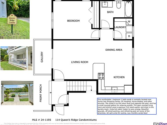 This comfortable 1 bedroom 1 bath condo is centrally located near Sunny Isle Shopping Center, JFL Hospital, movie theater, and other services. The condo is on the lower level just opposite the pool, and has a small covered gallery for relaxing outside. The open concept living room and kitchen area is spacious. Full sized washer and dryer in the laundry room. Insta-hot water heater to save energy. Beautiful grounds, off-street parking, and refreshing pool are some of the amenities. AC split units for cooling. Low monthly condo fees! Pets considered - 1 indoor cat, 1 dog less than 25 lbs.