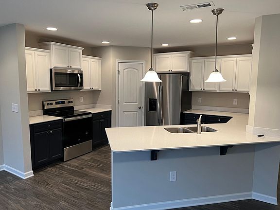 Beautiful, well designed 3 bedrooms, 2.5 baths, nearly 1700 square feet of space in a great community. No yard maintenance, HOA does all the work and paid by the landlord. Property is available on November 1, 2025. Beautiful luxury vinyl flooring and carpeted bedrooms. Very large master bedroom with walk -in closet and private bath with quartz countertop. Laundry on 2nd floor with washer & dryer. Two guest bedrooms with access to a guest bath with quartz counter top and undermount sink, combination tub/shower. Kitchen has quartz countertops, corner large pantry and new stainless steel stove, microwave and side by side refrigerator. Large peninsular island for prep work/cooking and sit up eating space. Open floor space to family room and dining room. Large private patio for backyard grilling/sitting area and additional lockable, walk-in storage space for overflow personal belongings. Single stall garage and driveway parking. Pictures are of the Model, our townhome looks the same.