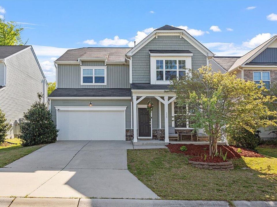 Welcome to this stunning 3-bedroom, 2.5-bathroom home offering the perfect blend of style, comfort, and convenience in a highly sought-after neighborhood. Ideally located near Research Triangle Park (RTP), RDU Airport, and just minutes from shopping, dining, and entertainment, this home truly has it all. Step inside to an expansive open floorplan featuring wide plank flooring, custom built-ins, and a cozy gas log fireplace—ideal for both entertaining and everyday living. The kitchen boasts granite countertops, stainless steel appliances, a large center island, and a spacious walk-in pantry. The downstairs also features a formal dining room and flex room that could be perfect as a home office, sitting room, or creative space. Upstairs, the loft provides a versatile retreat perfect for a family room, media center, or playroom. The large primary suite is your personal sanctuary, complete with a walk-in closet and ensuite bath. Two additional bedrooms and a full bath offer plenty of room for guests or a growing household. Outdoors, you'll love the fenced backyard with a generous patio and built-in firepit—perfect for relaxing or entertaining. A covered front porch and a two-car garage add charm and convenience, while the community pool ensures summer fun is close by.