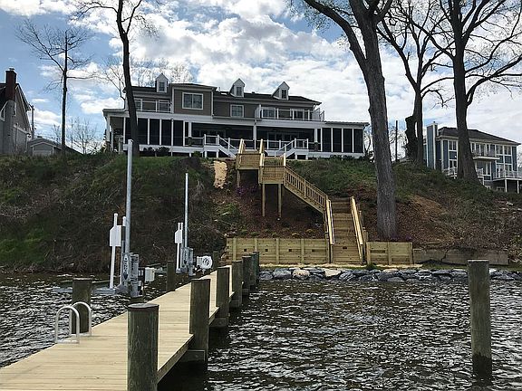 New construction, hard to find spacious multi generational waterfront home on the South River. Expansive three level in-law suite. Two full upscale kitchens with custom cabinetry, high-end granite, stainless steel appliances and walk-in pantries. Main level in-law master suite with private screened in porch, additional second floor master suite with sitting area, fireplace and private balcony. Spacious family rooms with hardwood flooring, custom crown molding and stacked stone gas fireplaces. Master baths include jetted tubs, natural stone tile floors, granite countertops, walk-in showers with multiple jets and separate toilet rooms. Main level and second level laundry rooms, large home gym, and spacious multi-use recreation rooms. Expansive covered porch and screened-in porches with spectacular sunrise views of the South River, Riva bridge and Rt. 2 bridge. Two oversized double car garages with driveway parking for ten additional vehicles. Deep water private pier with multiple boat/PWC lifts, electric and water.