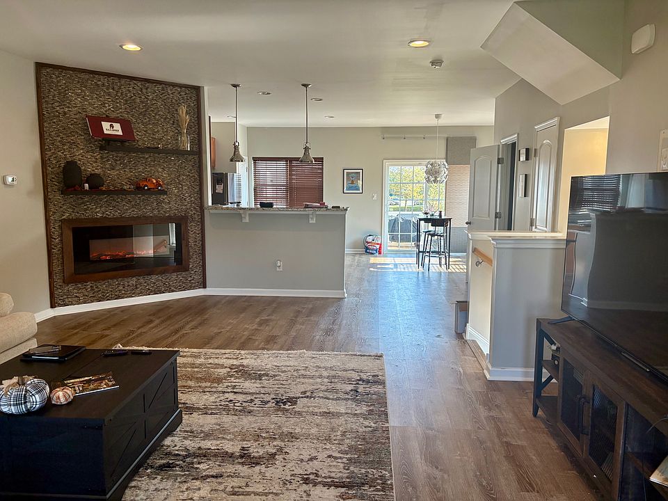 Electric fireplaceFenced in yardLots of natural lightUltimate master suiteWet barBeautiful granite countertopsOpen floor plan