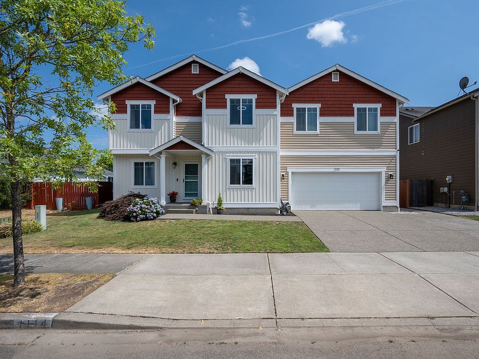 Beautifully designed 3400+ sq ft 5-bed, 3.5-bath w/fully fenced 6,200 SF lot in the heart of Orting. The main floor features an ADA bedroom w/ensuite bath, LG living room, formal dining, and a lovely kitchen perfect for gatherings, plus a spacious laundry room with abundant storage. Upstairs offers 3 bedrooms & 2 full baths plus 2nd primary suitealong w/a massive family room and second laundry. An oversized driveway and attached garage provide parking for up to 5. Step outside and enjoy walking distance to local restaurants, coffee shops, parks, or explore scenic walking/biking trails that wind through a vibrant community. Great for the extended household/multigenerational living