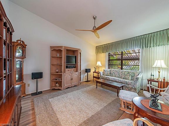 V.2878 - This inviting 2 bedroom 2 bath attached villa has a beautiful updated kitchen: new granite counter tops, new cabinets and new stainless steel appliances. Custom lighting in the dining room and kitchen make these rooms cozy spots to enjoy while looking out on to the golf course. More recent upgrades include wood-like tile planks throughout and new neutral carpeting in the bedrooms. Solar tube natural lighting in bedroom and bathroom to bring more of the outdoor inside. Ready to move right in to this furnished home. Original owner has meticulously maintained this Lakewood Villa close to everything Naples has to offer. Seller is providing a one year home warranty for peace of mind.