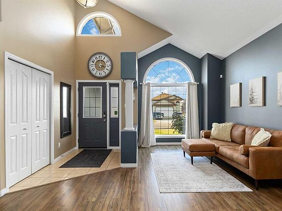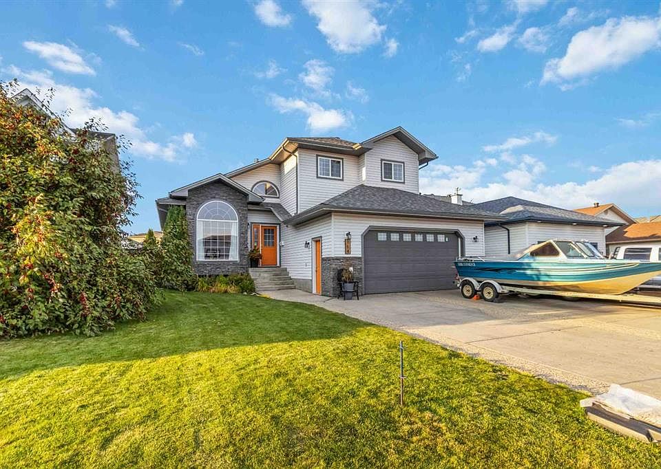 Welcome to 114 Lanauze Street – a fully finished 1.5-storey single-family home in the heart of Timberlea in the subdivision of Lakewood. Featuring 4 bedrooms, 4 bathrooms, and an oversized heated double garage (24’ x 24’), this well-maintained home offers space, comfort, and quality upgrades throughout – ideal for growing families. The main floor showcases vaulted ceilings, a large front great room, and continues with a cozy living room with a gas fireplace and updated feature wall. The kitchen features refurbished cabinets, a large island, and opens into a bright dining nook with garden doors leading to a large deck and beautifully landscaped yard. A main floor office adds flexibility for being a versatile space to be your home office or an upper-level 4th bedroom. The main level is complete with a main floor laundry room, mud room, and direct access to your attached garage. Take the beautiful staircase to the upstairs with updated carpets, a generous primary bedroom with a walk-in closet, and a 4-piece ensuite complete with a jetted tub and stand-up shower. Two additional bedrooms and a full 4-piece bath complete the upper level. The fully finished basement offers a spacious rec room, exercise area, an oversized 4th bedroom, another full bathroom, and loads of storage. This home offers updates that include 35-year shingles completed in 2018, two updated hot water tanks, and the addition of faux stone on the front of the home, giving this home incredible curb appeal. The exterior of this home offers a fully fenced yard, large front driveway with RV Parking, plus an extra-large rear deck, gardens and loads of trees, making this yard private. This is a fantastic opportunity to own a move-in-ready family home in one of Fort McMurray’s most sought-after neighbourhoods where the sellers have said they have loved for many years and enjoyed raising their kids in this home. Additional features include central a/c, central vac, radiant heat in the garage, and the prime location in walking distance to schools, parks, Birchwood Trails, and more. Call today for your personal tour.