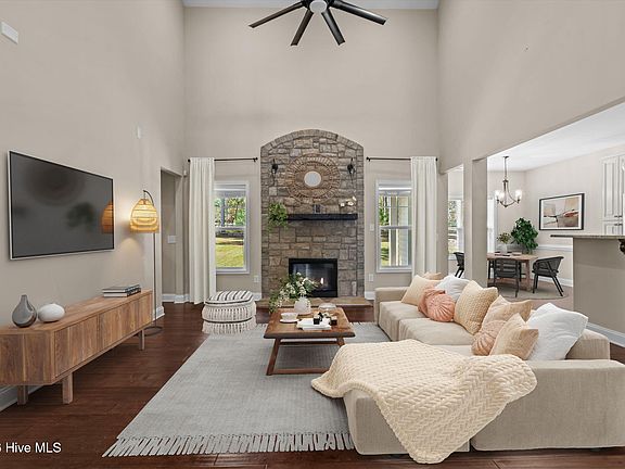 - Master Downstairs, Walk-in Closet(s), Vaulted Ceiling(s), High Ceilings, Entrance Foyer, Kitchen Island, Ceiling Fan(s), Pantry, Walk-in Shower, Blinds/Shades, Gas Log, Walk-In Closet(s)