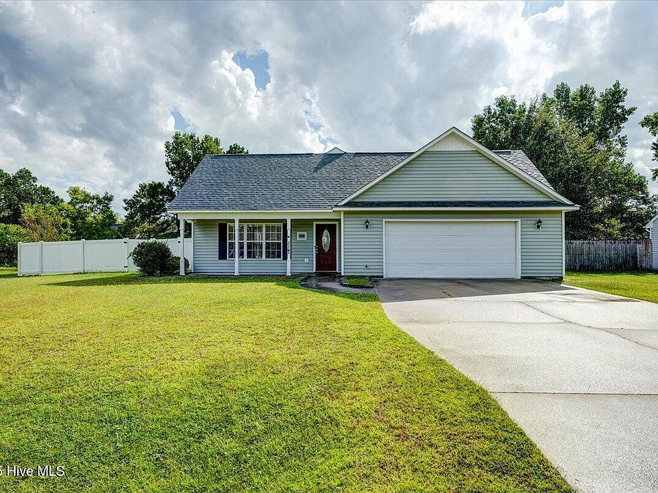 Charming move-in-ready gem nestled in the desirable Cherry Branch neighborhood. This 3-bedroom, 2-bath home offers a large bonus room that could be used as a 4th bedroom, exercise room or entertainment room. There is plenty of space outside with a large vinyl fenced in backyard for the kids to play or your dogs to run around. The roof was replaced in 2021, and the HVAC was completely replaced in 2021. This home is perfect for the first time home buyer or military family. This would also be a great rental to have as a future investment property. The spacious living area flows seamlessly into the dining space and is ideal for the entire family. The primary suite features two closets and a private bath, while two additional bedrooms on the main floor offer flexible space for guests, family, or a home office. Cherry Branch neighborhood offers a community pool, tennis courts, a clubhouse, and private Neuse River access with a ferry nearby. Located just minutes from MCAS Cherry Point, local schools, and beautiful beaches, this home is ready for the new homeowners. A buyer possession is also a possibility in case you need a home now.