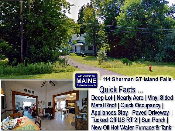 This 1500 square foot single family home has 2 bedrooms and 1.0 bathrooms. This home is located at 114 Sherman St, Island Falls, ME 04747.