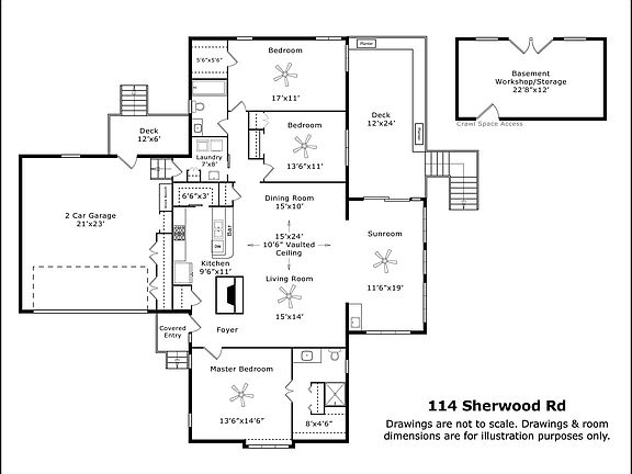 - Rooms: Dining Room, Utility/Laundry, Kitchen, Bedroom 2, Bedroom 3, Carolina Room, Master Bedroom, Garage, Living Room, Workshop