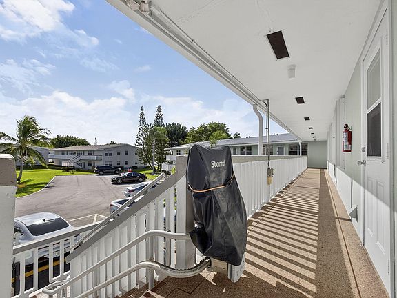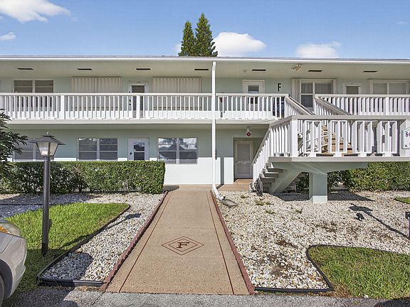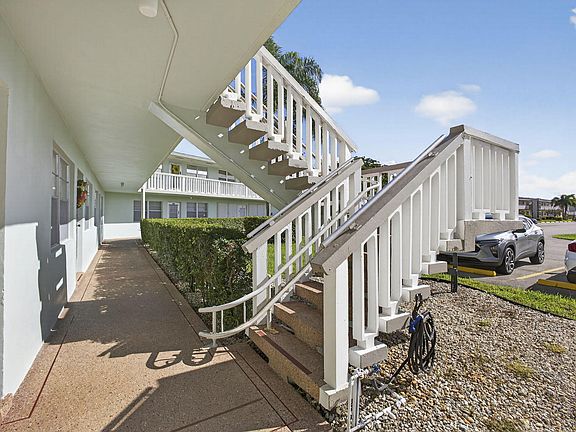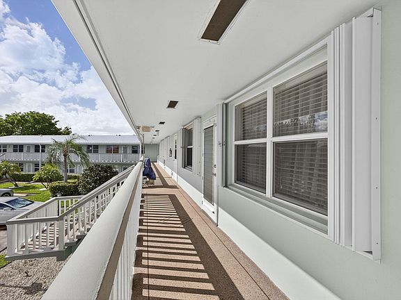 If you love the resort lifestyle, don't miss this light & bright 2 bed/2 bath 2nd-floor condo in Century Village(55+). Enjoy stunning water views from the large balcony off both bedrooms. Located in the desirable Somerset section near the pool & tennis courts, with a newer roof & strong reserves. Features include diagonal white tile throughout, white kitchen & bath cabinets, roomy closets, and laundry right outside your door. Assigned parking plus plenty of guest spots & community bus service. The main clubhouse offers a theater, indoor & outdoor pools, fitness center with classes, tennis, pickleball, bocce, clubs & more. Two guarded gates, 24-hr security patrol, and hurricane shutters add peace of mind. Centrally located near shops, dining, airport, beaches & downtown.