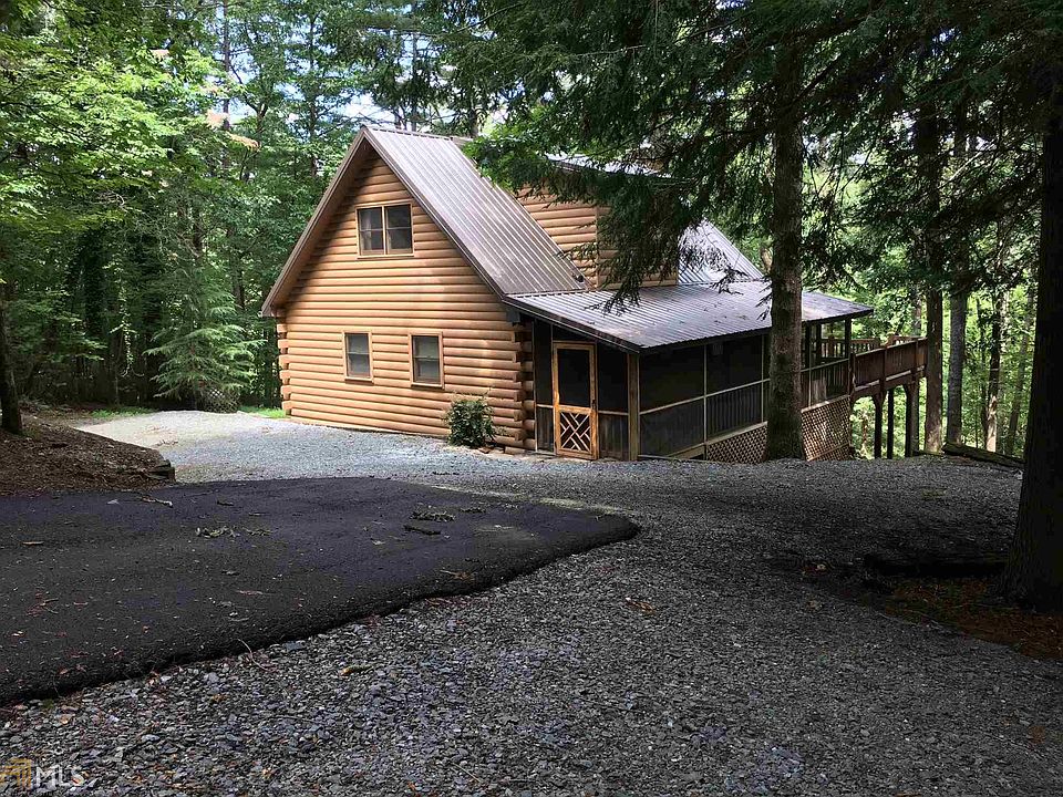 Come fall in love! Fish/swim/raft daily on your private pond, or the Cartecay River (runs through Blackberry Mountain)! This perfect cabin get away or full time home is privately nestled on 1.7 acres & new updates include metal roof & exterior stain (2017), stainless appl (2016), & basement finish. Soaring ceilings/walls of windows, exposed beams, 12" pine floors, tongue & groove accents completes the picture! Loft bedroom/bath upstairs, bedroom/bath on main, plus finished basement w/ bath/laundry (could be teen suite/3rd bedroom?) or rec room! Enjoy nature from the full length screened porch or full length deck viewing your private pond and wooded wonderland. Guest parking for everyone or room to grow. This lot extends across the street too.