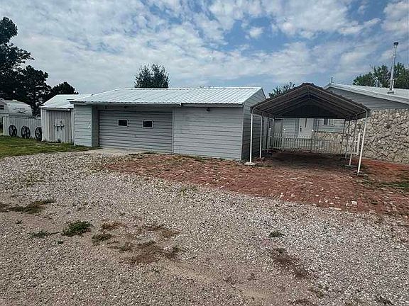 Check out this ranch-style home that’s full of potential and ready for its next chapter! Featuring durable cement board siding accented with stone and a sleek metal roof, this home is as attractive as it is low-maintenance. Inside, the open-concept layout makes the living room, dining, and kitchen flow together perfectly—great for hanging out or hosting friends. Just past the kitchen, you’ll find a large primary suite with soaker tub, and just down the hall are 2 additional bedrooms and another bathroom, so there is plenty of space to make yourself at home. The large corner lot gives you extra room outside to run and play, plus the backyard is fully fenced for privacy, in addition to the detached garage and carport, there are a number of additional exterior storage sheds, so there's plenty of room for all your tools, toys, and hobbies. This one’s being sold as-is, giving you the chance to put your own touch on it while enjoying everything it already has to offer.
