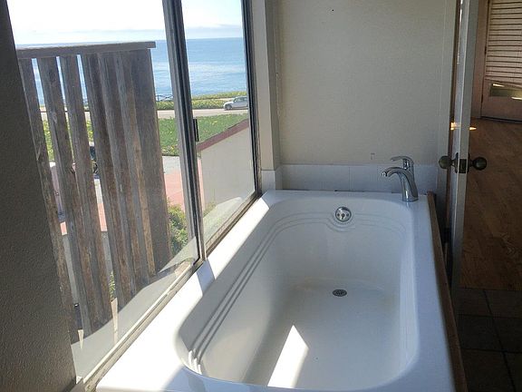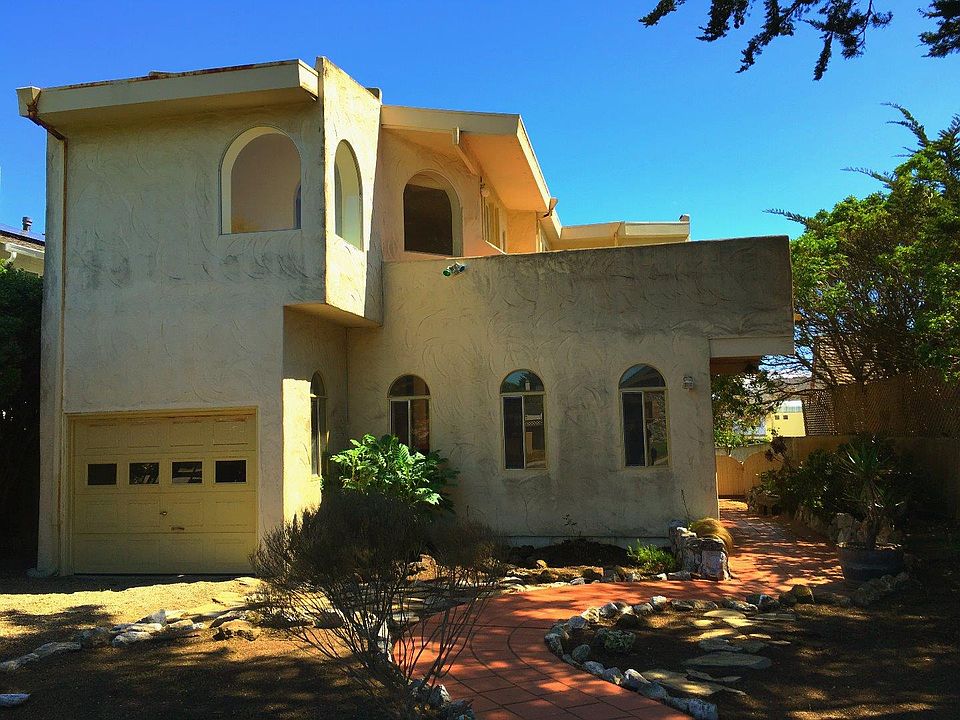 Breathtaking ocean view from this single family two story home with a complete living area on each floor, just steps from West Cliff Drive. Kitchen, living room, bedroom, bath and library/studio on each level, joined by interior and exterior stairs. Woodstove and soaking tub with an ocean view upstairs. Basement storage area, patios, attached garage, enclosed backyard.