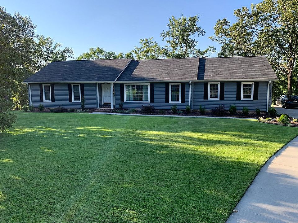 Delightful, single-story home in River Downs! The streets are lined with well-kept properties and beautiful trees. This 4BD/2BA home also features a large den, formal living room and dining room, fully-renovated kitchen with all new appliances, breakfast room, laundry room, sunroom, and deck! The long, newly-paved drive leads to a side-load, 2-car attached garage and provides plenty of parking. The front yard is easy to manage with low maintenance landscaping and an irrigation system. The home has been completely refurbished. The owners took the extra step to also have the home pre-inspected, all items addressed by licensed contractors, and appraised. Some of the improvements are: new roof and gutters, new driveway, new windows, new French doors in master and den, new storm doors, new flooring throughout (carpet, hardwoods, and tile), new counters and appliances, new light fixtures, fresh paint inside and out, and a new moisture barrier in the crawlspace. The home is located on a quiet cul-de-sac lot in an established neighborhood. The rear yard is partially wooded and provides much privacy. There is a pasture on the other side of the woods and in the winter months you can see the beautiful Blue Ridge Mountains. The location could not be better as you are in the Riverside School District and within minutes of Downtown Greenville and Downtown Greer. Homes in this development are rarely available. Schedule your showing today!