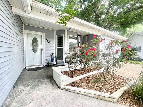 This cute cottage style home is walking distance to Bluewater Elementary and right by the bypass! It features 3 bedrooms and 2 bathrooms! The livingroom is spacious with a beautiful fireplace (fireplace is not functioning) that opens to an eat in kitchen! The Kitchen features beautiful white cabinets, large over the sink window, and adorable wood ceiling! Off the Kitchen is a great size Florida room that is temperature controlled!! The Master bedroom features vaulted ceiling and a wooden beam, back yard access, plus an en-suite bathroom that has a beautifully tiled standing shower! The second and third bedrooms are a great size and the second bathroom features a shower/tub combo! The backyard is a nice patio area for relaxing evenings and is fully fenced! Home comes with a Pool Pass to the neighborhood pool! Washer and Dryer included in As-Is Condition!