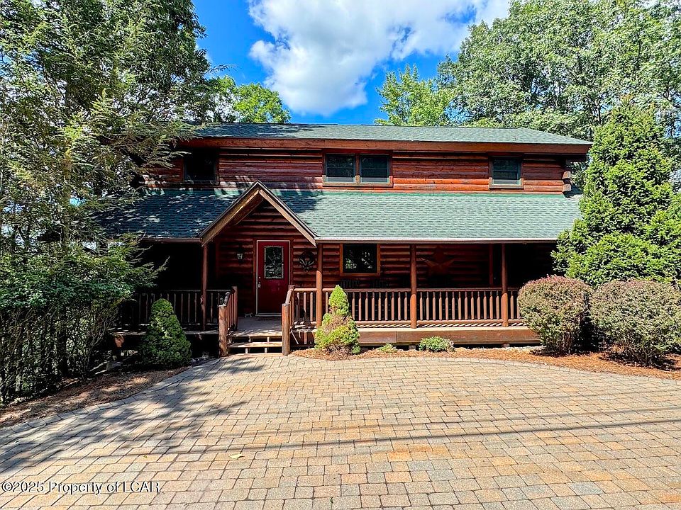Welcome to your mountain home in the highly sought-after, gated community of Eagle Rock Resort.This stunning , turnkey log home offers the perfect blend of rustic charm & modern comfort. With 4 bedrooms & 4 bathrooms, including 2 en-suite bedrooms, it sleeps up to 12 people. There is plenty room for family & guests to relax & unwind. The spacious interior features a warm and inviting open layout The large family room on the lower level is ideal for entertaining, or hosting game nights with the included shuffleboard. Step outside onto the expansive wraparound deck, where you can take in the seasonal views of the surrounding mts and enjoy the peace and privacy of your wooded setting.