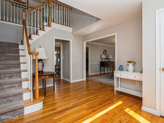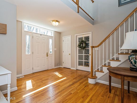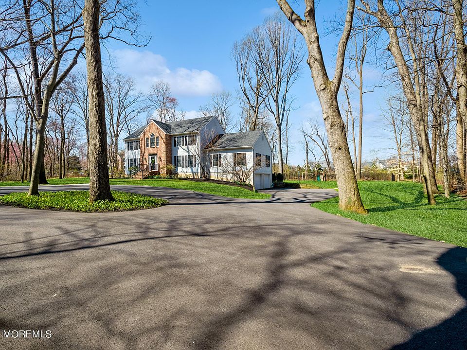 One of a kind Lincroft home located in a quiet cul de sac, on 2.5 acres. Stunning Colonial offers 5 BR's 3.5 BA's, 2 story foyer w wood flrs, Dining room w moldings,Living room w French door. Eat in Kitchen w a center island, granite ctrs, SS appliances w sliding door to patio plus a newly fenced yard backing woods. Oversized Family room w a wood burning FP, finishing off the 1st floor w a half BA, laundry and a BR or office The 2nd floor offers a Primary ensuite w oversized closets, full BA w double sinks and a loft sitting area.There are 3 additional BR's plus a full BA.The lower level has a finished playroom, full BA, mudroom and entrance to the 2 car garage. All this plus convenient to stores, parks, transportation plus Middletown South Schools!