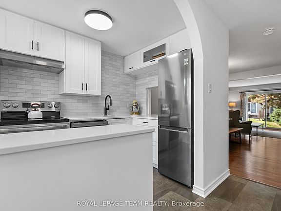 Welcome to 114 Valley Stream Drive, Unit D a beautifully updated, turn-key home in the heart of Leslie Park. Located in a quiet, mature neighbourhood surrounded by greenspace, this home offers the perfect blend of comfort, style, and convenience. Enjoy easy access to nearby amenities, parks, schools, and a short commute to downtown Ottawa. Step inside to find a tastefully renovated kitchen (2022) featuring quartz countertops, stylish backsplash, custom cabinetry, and modern stainless steel appliances. The bright living and dining areas, both finished in gleaming hardwood, create an inviting space to host family and friends. Upstairs, you'll find two spacious bedrooms with large windows and generous closet space. The updated main bath features a new vanity, mirror, and lighting for a fresh, contemporary feel. The finished lower level adds valuable living space, offering a flexible rec room perfect for a TV area, playroom, or home gym. A workshop and laundry area complete this level, adding practicality and function. With its modern updates, desirable location, and move-in-ready condition, 114 Valley Stream Unit D is the perfect place to call home.