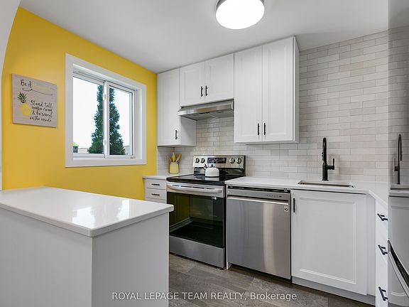 Quiet mature neighbourhoodSurrounded by greenspaceTastefully renovated kitchenQuartz countertopsStylish backsplashCustom cabinetryModern stainless steel appliances