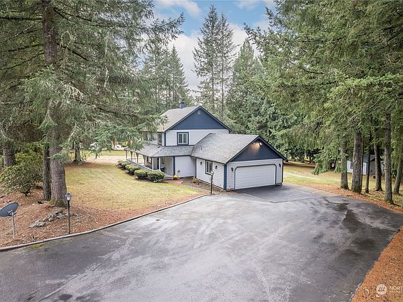 This is the home you've been waiting for! A spacious 4 bedroom, 3 bathroom home on 2+ wooded acres on a private drive. Enjoy the outdoors from the fully covered wraparound front porch or the large covered back patio. Inside, you'll find generous rooms perfect for entertaining, including a living room with wood insert and a family room with a pellet stove. The main floor features an updated bath with a huge walk-in shower. The primary suite has its own bath and walk-in closet. Three additional bedrooms and a full bath are upstairs. Watch wildlife from your serene, wooded property. Extra features include RV parking, paved parking, a 16' x17' stick-built shop, fresh interior paint, a newer roof and a brand-new septic system. Welcome home!