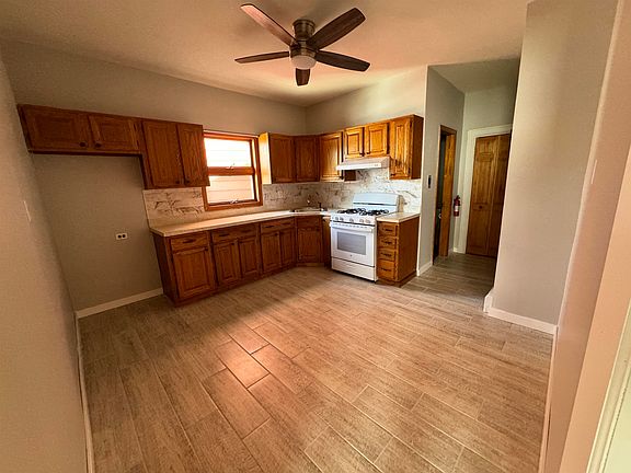 Modern tiled kitchen backsplashUpdated ceiling fansBrand-new flooringFreshly painted interiors