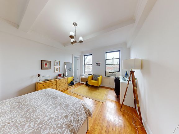 Large, renovated, and quiet Pre-War apartment with southern exposure. The apartment features stunning views from all windows, high ceilings, coffered beams, moldings, a marble windowed bathroom, king-size bedroom, and entry-foyer that easily fits a desk. Great closets & renovated kitchen with granite counter tops and updated appliances including dishwasher and microwave. Pets OK, Laundry, Live-in Super. Prime UWS!