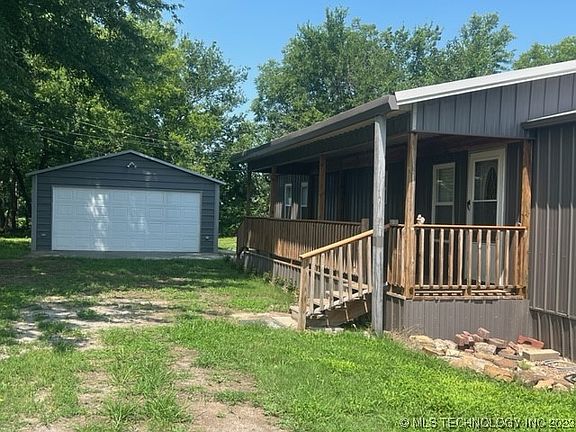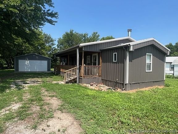 Complete remodel on approximately 1/4 acre! This home is located on a secluded dead end street, but has the convenience of living in town! 2 bedrooms, 2 full baths, 2 living areas, utility and mud rooms, new cabinets and new SS appliances in kitchen (fridge stays!), walk-in master closet and walk-in showers, ceiling fans, smoke detector, insulated detached garage with an overhead garage door opener, vinyl waterproof flooring along with carpet in bedrooms, security system (not installed)! Enjoy those long cold wintry nights with the fireplace in the formal living! Large covered front porch to relax on after a long day! Fully guttered and fenced! Maintenance free exterior with metal siding and roof! Easy access to the bike/walking trail! Mature trees! Close to Skiatook Lake!