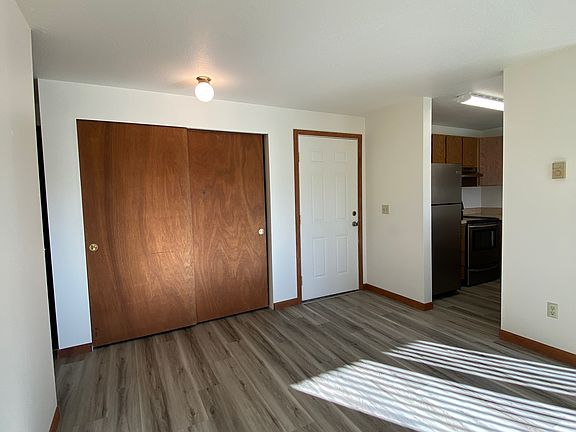 Brand new flooringWalk in closetElectric baseboard heatElectric rangeLaminate plank flooringFully equipped kitchenExtra storage closet