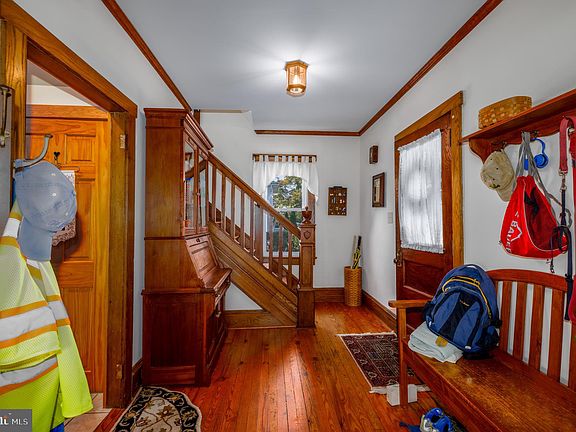 Welcome Home! Walk up the inviting pathway to the cozy front porch. Enter into the welcoming foyer with staircase that leads to 3 ample bedrooms and 2 full bathrooms. Main bedroom has sitting room with walk in closet and full bathroom. A second renovated bathroom is also on 2nd floor for the 2 additional bedrooms. On first floor you will find all wood flooring thru the sitting room and dining room. A comfortable rec room with fireplace and office area and half bath are located in the rear of home. The warm kitchen has peninsula with seating. Basement with door to outside has washer and dryer and storage. Outside you enter a welcoming deck with bump out for grill looking over a stunning backyard with 2 sheds and shady trees. The oversized side yard has beautiful gardens offering you plenty of outdoor space. Come see this one, it will not last.
