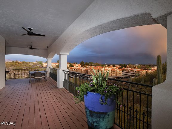 This stunning house + guest house is an entertainer's dream! Amazing city lights and views of the Catalinas are just the start. Main home offers a magnificent kitchen w/2 islands, rich cabinetry, lovely granite, fantastic bar area, 2 dishwashers & 2 sinks. Wonderful hickory flrs, exposed brick details & crown molding adds warmth and character. Let the party flow out to the huge wraparound patios & soak in those views! Mstr Ste has a generous ensuite w/dual vanities, jetted tub, walk-in shower & gym area. Fabulous 2 BR, 2 BA Gst Hse features concrete flrs, full kitchen w/SS appl, quartz counter, stylish backsplash, living & dining areas. Main house has a 3-car gar & GH has a 2.5-car gar. Don't let the address fool you, this remarkable compound is tucked a quarter mile back from the road.
