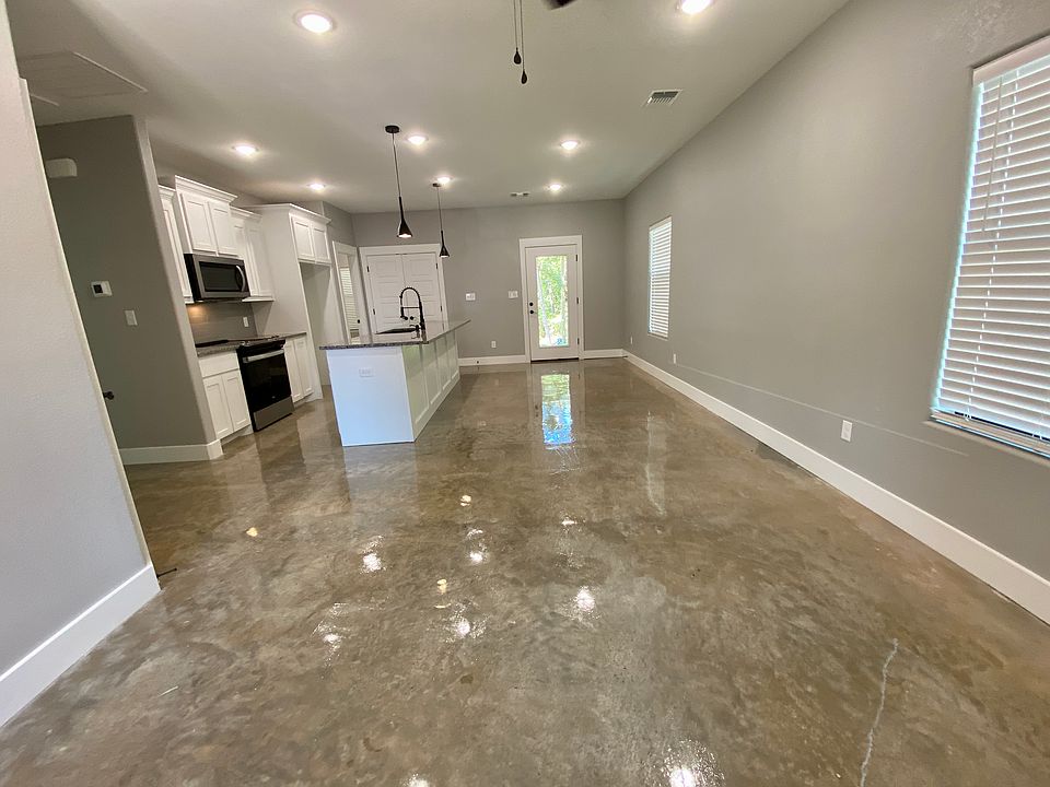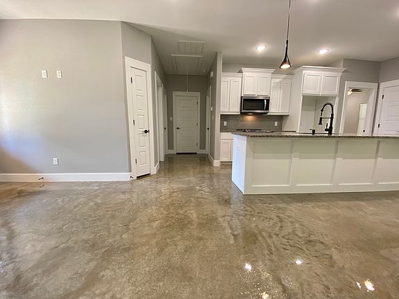 Nearly NEW! MOVE IN READY NOW to November 1st. Enjoy Sunsets & Sunrises on your covered Front Porch or Patio! Relax in this Serene & Quiet home nestled in the trees sitting on a large lot. Just built in 2022, this STUNNING 3 Bedroom 2 Full Bath Home will bring you comfort & energy efficiency. Park in your long private concrete driveway, step into easy-care glazed concrete floors, tall ceilings, granite counter tops, stainless appliances. Too Pretty to last very long!
