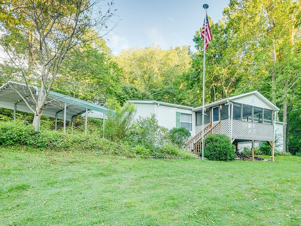 QUIET HOME WITH A CREEK ON THE BORDER AND WITHIN A SHORT DISTANCE TO FISH SPRINGS MARINA ON WATAUGA LAKE! This charming 3 BR / 2 BA home would be a great vacation home, Airbnb or rental, as well. It features a nice open feel from the living room to the kitchen and dining area. The living room has a wood-burning fireplace, the cozy kitchen features warm cherry cabinets, newer black appliances, a convenient island, and an adjacent dining area. It features a split bedroom plan with the primary bedroom on one end with two good-sized bedrooms on the opposite side of the home. Outside, you find a large screened-in front porch, a back porch, a back fenced area for the kids to play or the fur babies to enjoy, a double carport, a 10 X 16 shed placed in December of 2020, and a babbling creek down one side of the property. The A/C unit was replaced this year, the architectural shingle roof was installed in 2020, and the walk-in shower was installed in 2020. This home has so much to offer and is just a short distance to Watauga Lake! Don't miss out, schedule your showing today!