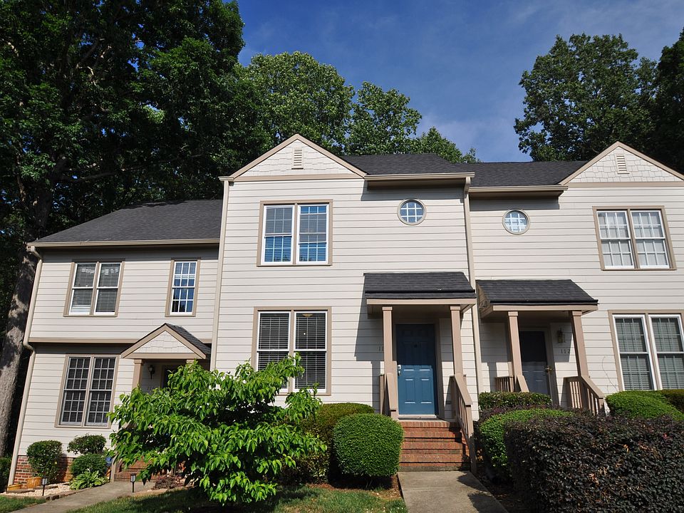 Come visit this welcoming, light-filled Cary townhome ready for immediate occupancy and located in a quiet neighborhood convenient to all the Triangle has to offer. Its lovely and inviting interior has been freshly painted and carefully updated with gorgeous fixtures, colors, and finishes. Once inside you'll notice tall ceilings and natural light accentuating the rich, luxury plank flooring gracing the living areas. The foyer opens on the left to a spacious kitchen offering a sleek stainless appliance package, tiled floors, updated fixtures, a pantry and plenty of room for a breakfast table in front of double picture windows. The heart of this home is undoubtedly its its massive family room anchored around a cozy fireplace. Depending on your lifestyle, this space is large enough that it could be configured as one large casual living space, or also with a dedicated dining space and adjacent living area. Whatever you desire, this room is large enough to accommodate! The family room also includes direct access to an elevated deck overlooking a lush, wooded buffer. What a great place to relax after a long day and far superior to so many other neighborhoods. This home continues to offer "wow" factor upstairs. You'll immediately appreciate the conveniently-located 2nd floor laundry room (with washer and dryer included) that makes chores a bit more bearable; no more lugging laundry up and down the stairs! This home also offers dual suites; ensuring sufficient luxury for everyone. The rearmost bedroom showcases a vaulted ceiling, dual windows, a ceiling fan, an expansive walk-in closet and an en-suite bathroom with a quartz-topped, furniture-piece vanity, a tub/shower and flooring. The front bedroom is almost as large, also with a walk-in closet, double windows and an en-suite bathroom with a marble-topped furniture-piece vanity, tiled flooring and a tub/shower.