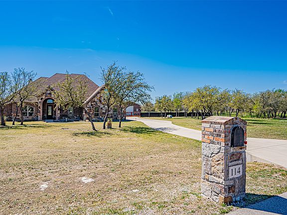 Make the drive out to see this beautiful home in Azle, Texas! This 114 Woodlot Lane property is a single-family home located within the Deer Ridge Estates Subdivision. Built in 2015, this residence offers 5 bedrooms with all walk-in-closets and 3.5 bathrooms. The master bathroom holds a 48 inch master soaker tub! The entire home is approximately 3,160 square feet of living space. The property sits on a 2-acre lot, providing ample outdoor space. Key features of the home include a kitchen equipped with granite countertops, an island, breakfast bar, coffee bar and propane stove top! This home makes it ideal for both daily living and entertaining! The living Room features a focal point rock fireplace, creating a cozy and inviting atmosphere! The Master Suite is an oversized master bedroom that boasts a three-level molded tray ceiling. The master bath includes a spacious walk-in closet with a unique built-in vanity. Outdoor Amenities: A private outdoor kitchen is accessible via the back porch and space for a family barbeque cookout! Additional highlights of the property are a 50 x 30 workshop equipped with electricity, water and 10 X 12 roll bay doors. The Workshop also has attached carport, offering versatile storage and workspace options, that can park a 45ft RV. There is a RV Hook up with electricity. Garage: A three-car garage provides ample parking and storage space. water Softener installed and Roof is 9 years old. The Deer Ridge Estates subdivision offers gated access and perimeter fencing, ensuring privacy and security for residents!