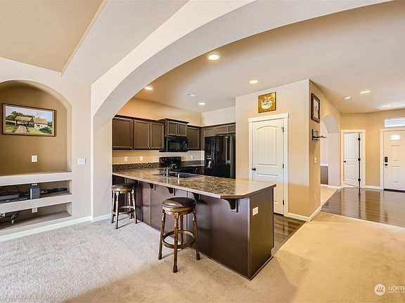 Impeccable One-Owner Home in Anderson Ridge! This FURNISHED Richmond American single-story home offers dream-like living. Meticulously maintained, it features a vaulted great room, spacious kitchen with eating bar, hardwood entry, art niches, coffered ceilings, + rounded archways. Elegant 2-panel doors with oil-rubbed bronze hardware add a touch of class. The layout feels expansive beyond its square footage. Enjoy the low-maintenance front yard and cement walkway along the side of the home to keep the dirt coming inside to a minimum. The backyard deck is bathed in sunlight, has a privacy fence, and the shed plus the mower and equipment inside of it stays. It's all perfect for outdoor enjoyment.Close to JBLM, shopping and all major freeways.