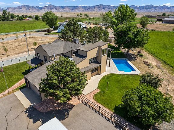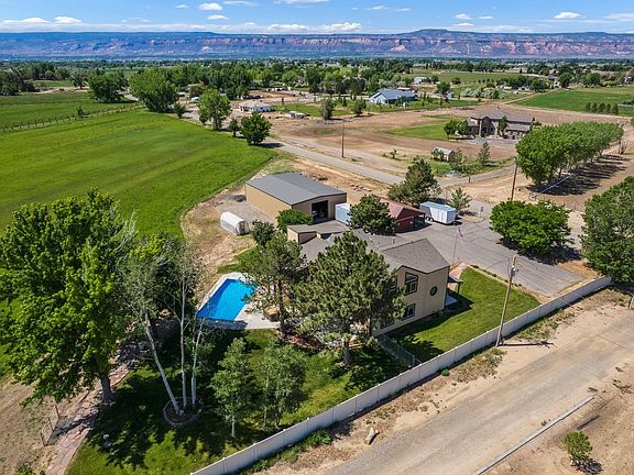 Set on 9.1 irrigated acres, this beautiful property offers panoramic views of the Bookcliffs, Colorado National Monument, and Grand Mesa. The 4 bedroom, 3 bathroom home is filled with natural light and designed for comfortable living, featuring an open-concept layout, spacious kitchen, and inviting gathering areas that make it easy to entertain or unwind. Outdoors, a 16x32 pool and hot tub create a peaceful setting to take in the surrounding scenery. The land currently produces grass hay and includes 8 shares of irrigation water, offering potential for small-scale farming, livestock, or simply wide-open space to enjoy. A 40x60 shop and a spacious barn provide ample room for equipment, storage, or future projects. This property perfectly blends functionality, privacy, and natural beauty — ideal for anyone seeking room to breathe and live the Western Colorado lifestyle.